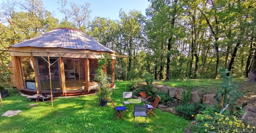 Notre Cabane Yourte est prête pour vous accueillir. Une mezzanine et son escalier viennent d'être construits. Elle propose un couchage sous la grande ouverture de 160 cm de diamètre. Ce puits de lumière vous connecte au ciel nocturne."La Tête dans les Étoiles". C'est une structure originale, belle, saine, construite avec des matériaux écologiques.